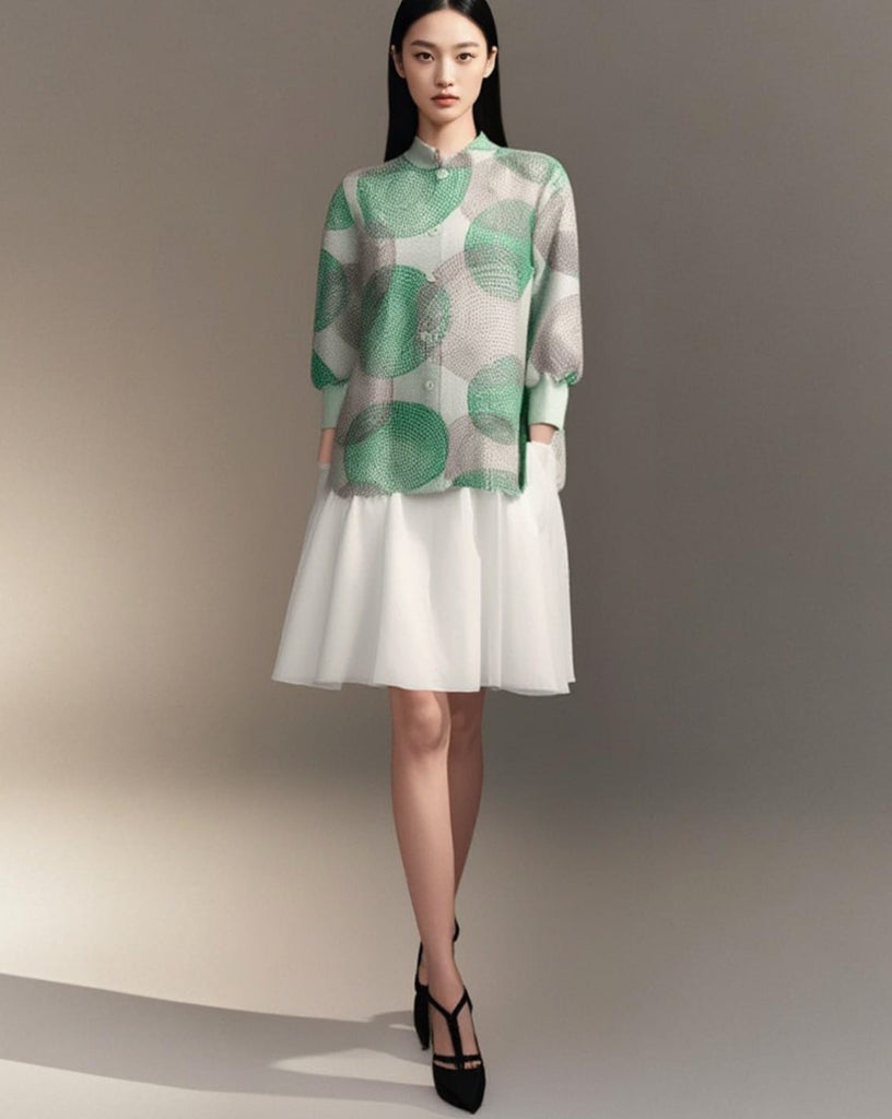9250008 Circular Print Puff Sleeve Blouse – Ns' Boutiques