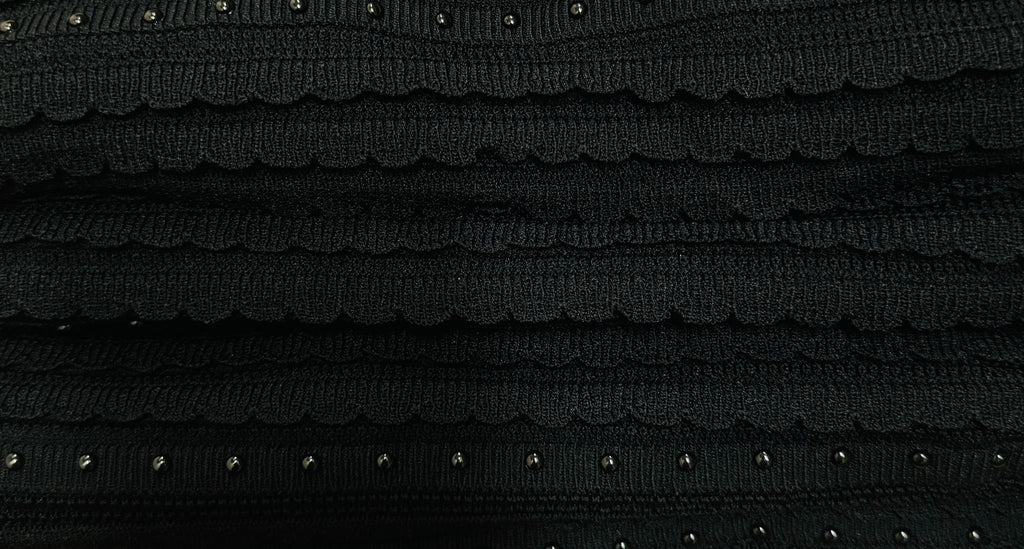 - Fabric/texture: Striped, ruched/ribbed texture with subtle stubs.