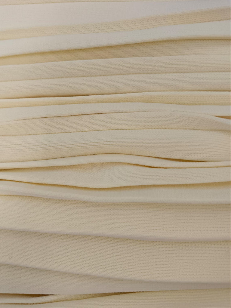 A sleeveless, light yellow midi dress with a fitted bodice and a flared pleated skirt. The top portion has a scoop neckline and button-down detail running along the front, giving it a structured yet feminine look. The ribbed fabric on the bodice, enhancing its form-fitting silhouette, and transitions into soft, flowing pleats below the waist. The model pairs it with light grey heeled mules, creating an elegant, modern, and summery outfit.