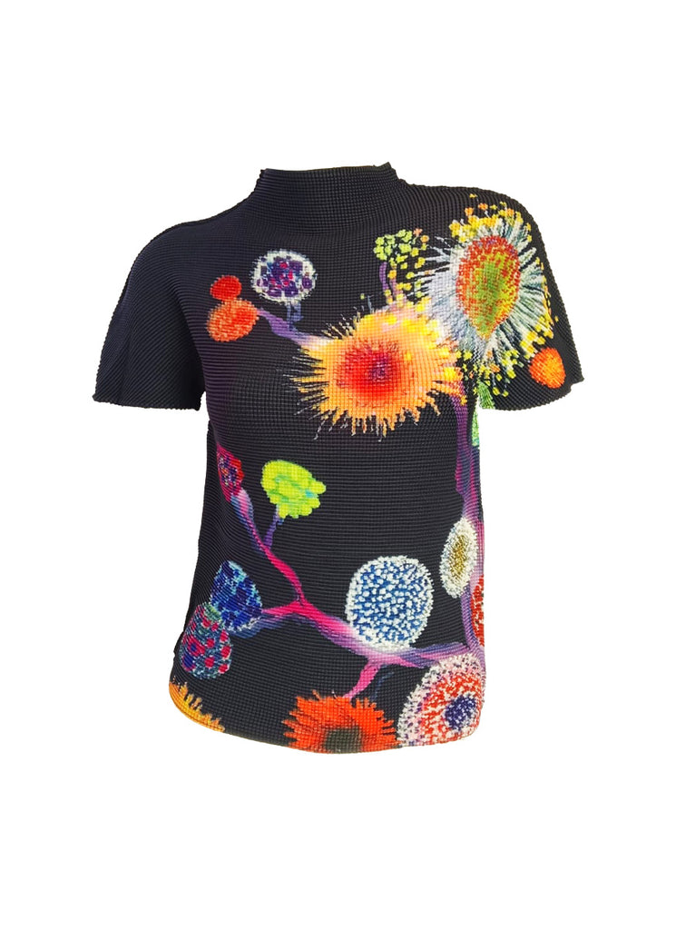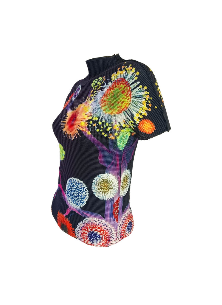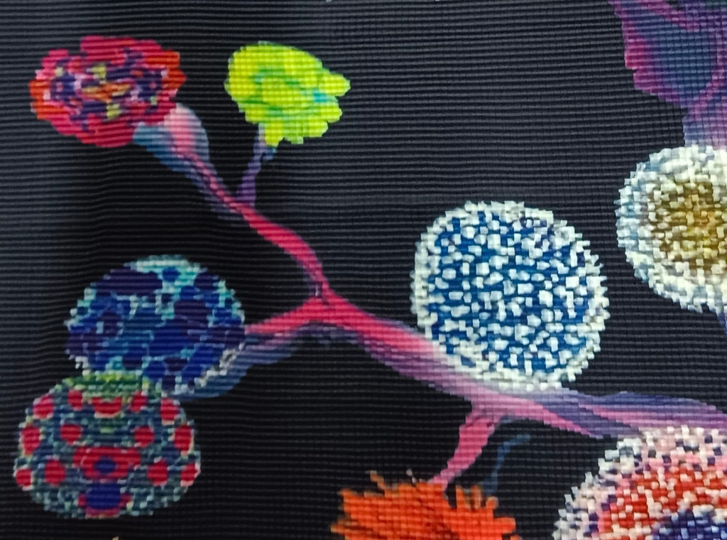 - Texture/vibe: Bright, graphic, painterly print that stands out against the dark background