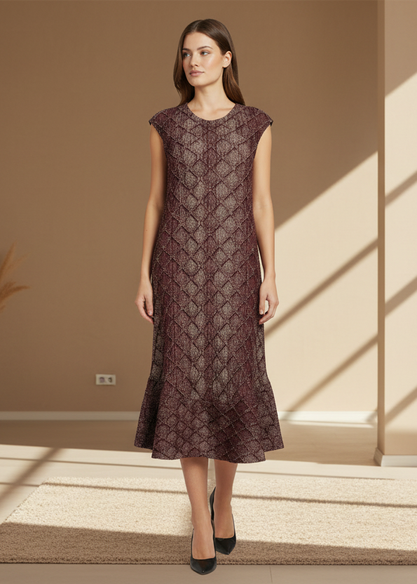 Overall, it’s an elegant, dressy piece suitable for semi-formal occasions, emphasizing texture and pattern over bold color blocking.