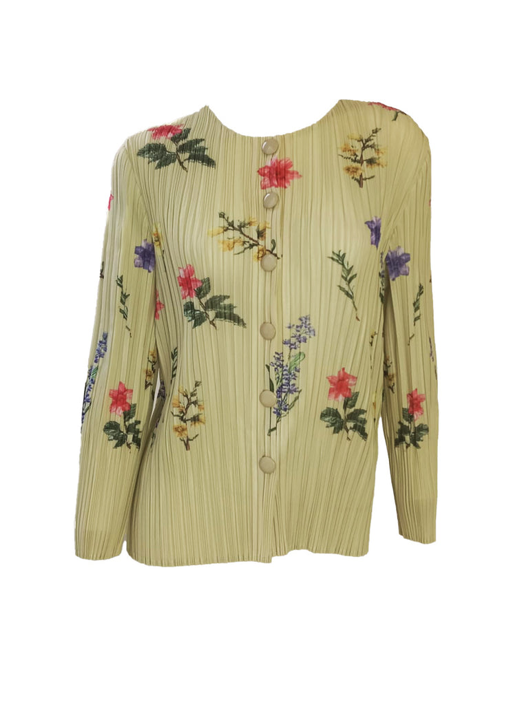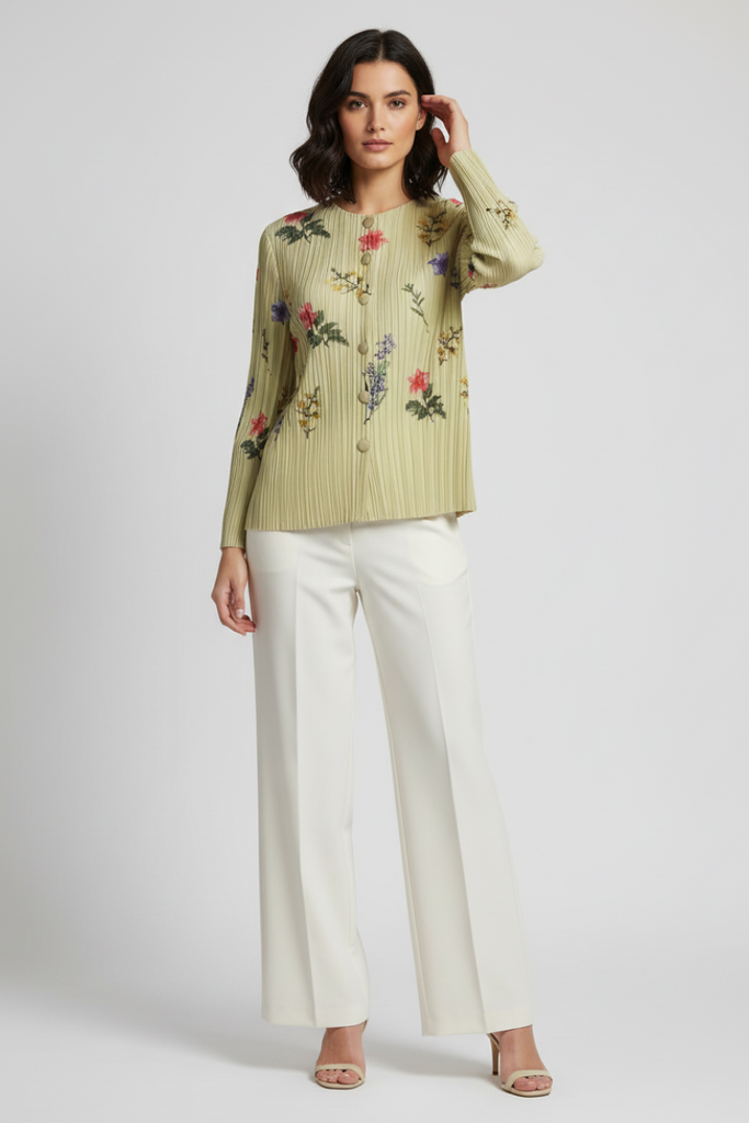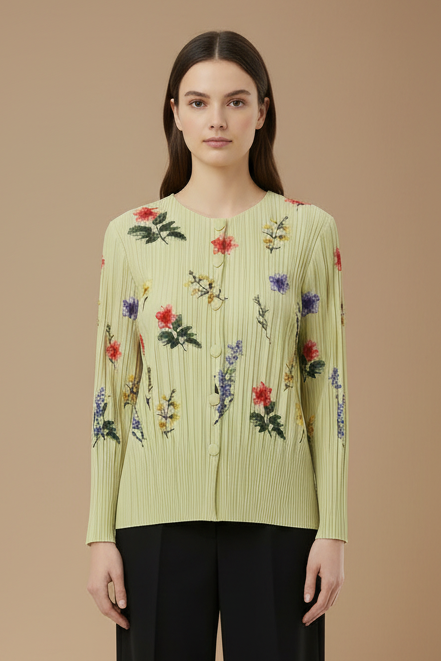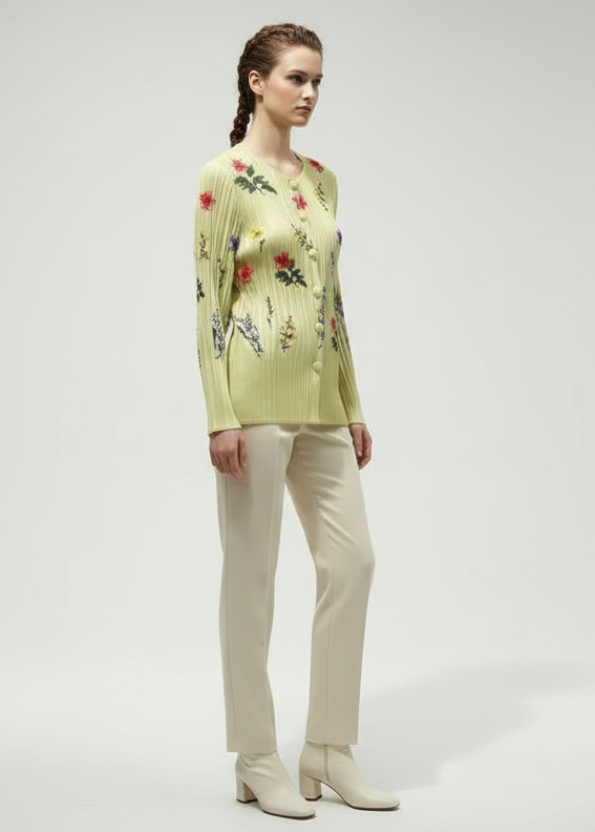 Multicolored Floral Accents Pleats Cardigan