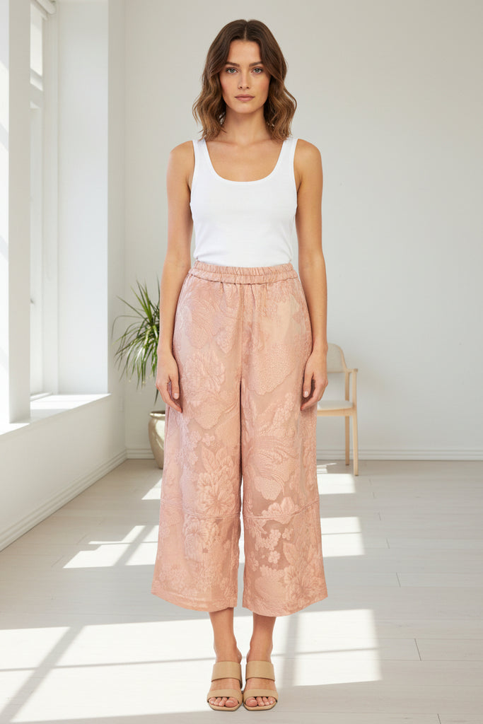 Floral Brocade Wide Leg Pants