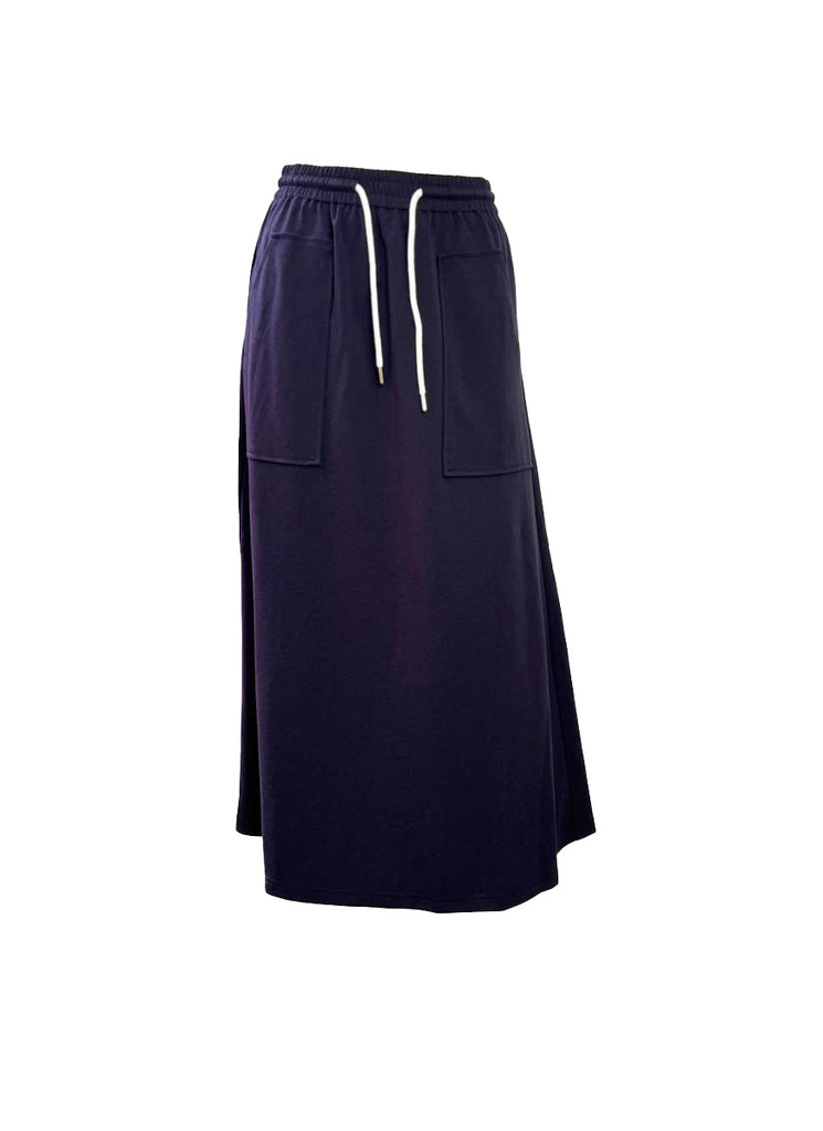 - Bottom: Midi-length A-line skirt with a relaxed, modest silhouette